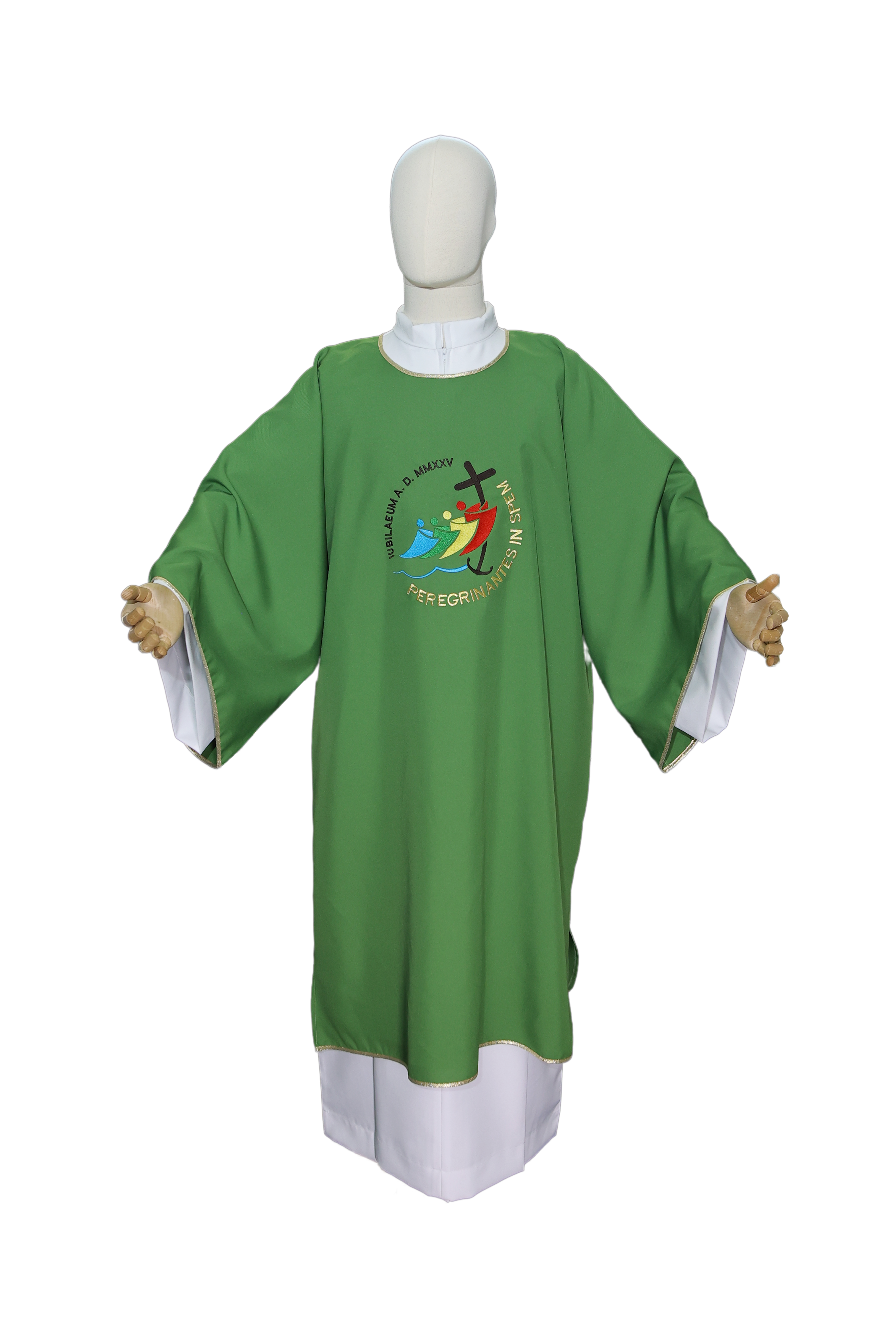 Dalmático en tejido de poliéster Vaticano con logo del Jubileo BORDADO delante y detrás PRECIO VARIANTE DE 3€ PARA LOS COLORES